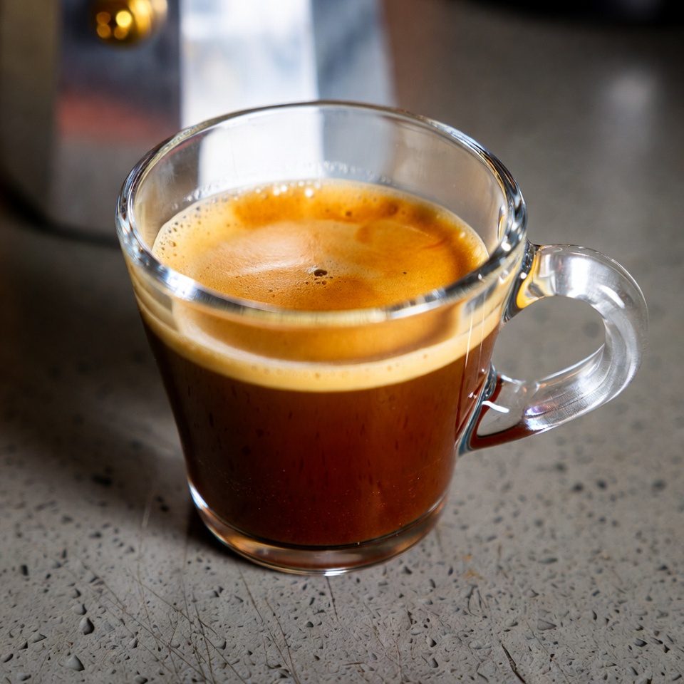 - Preheat the Glass – Fill your tall glass with hot water and let it sit to warm up while you prepare the coffee. This prevents temperature shock.