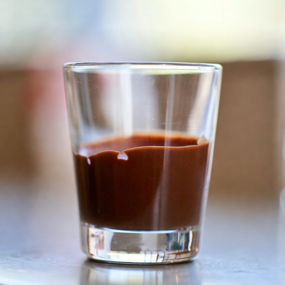- The chocolate should be thick enough to support the espresso but still drinkable.